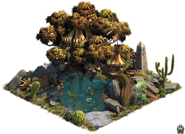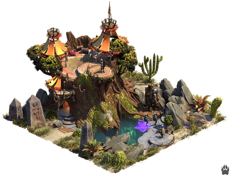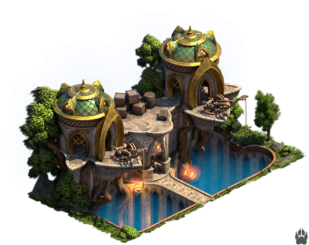 - Tocón de Señales de Boughsong 2x2 - Cultura, KP (2). Bonificación de conexión: aumento de producción propio (dos veces, +1 KP por cada conexión, por lo que en total el edificio totalmente conectado produce 4 KP/día).