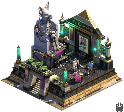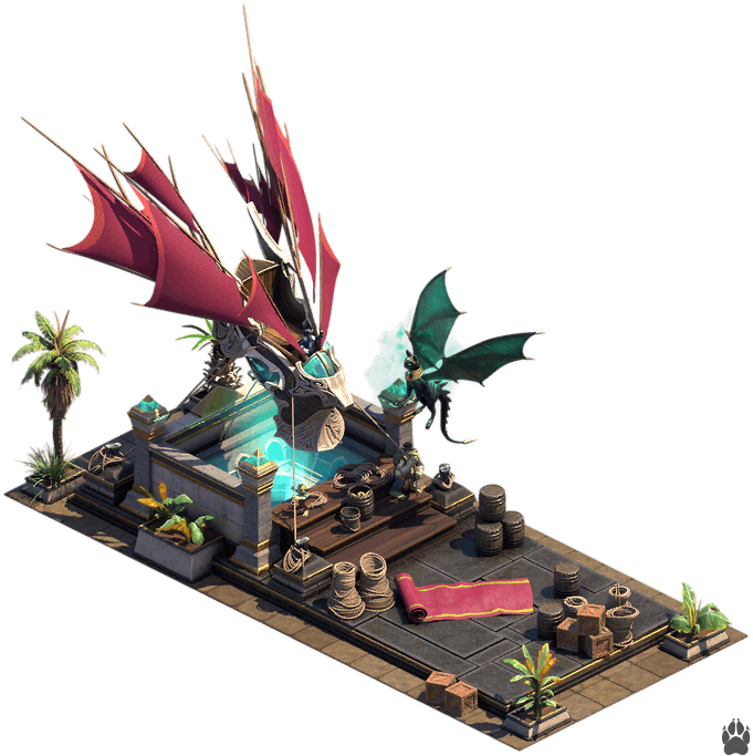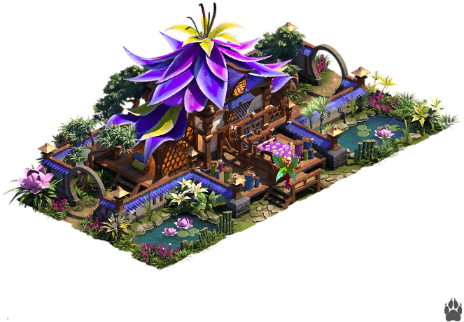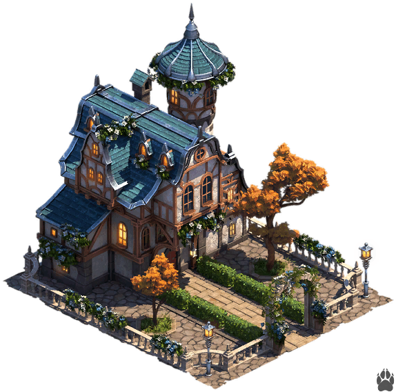 - Escalinata de Reunión de Boughsong 3x4 - Bienes ascendidos. Bonificación de conexión: aumento de producción propio; Fabricación mágica x1; AWKP (3) x1; Comida para mascotas x1.