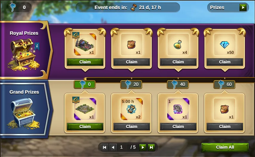 El Pase de premios reales es un elemento adicional que puede acompañar a cualquier Evento regular en Elvenar.